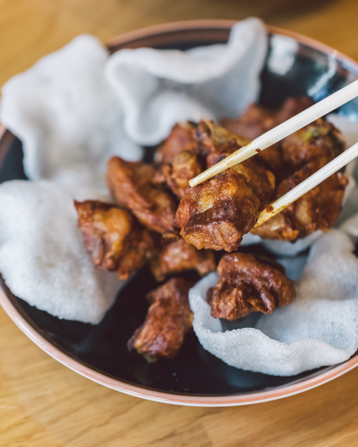 Nuestro pato laqueado al estilo Pekín es una de las grandes joyas de la gastronomía china. Asado lentamente hasta conseguir una piel fina, dorada y crujiente, se sirve acompañado de finas crepes caseras, salsa tradicional y guarniciones frescas.